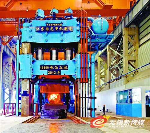 无锡机械装备工业再传喜讯,记者经过查询了解到,具有国际上最大吨位的油压机日前在江阴临港开发区下线投用。该“巨无霸”由江苏国光重型机械有限公司自主制作完结,到达19500吨,一举超过了此前中信重工18500吨的记载,参加研制规划的我国重型机械研究院股份公司研究员成先彪和记者说,航母甲板、大型球阀、核电设备等设备所需的重型锻件都能靠这台大压机来一体铸造成型。